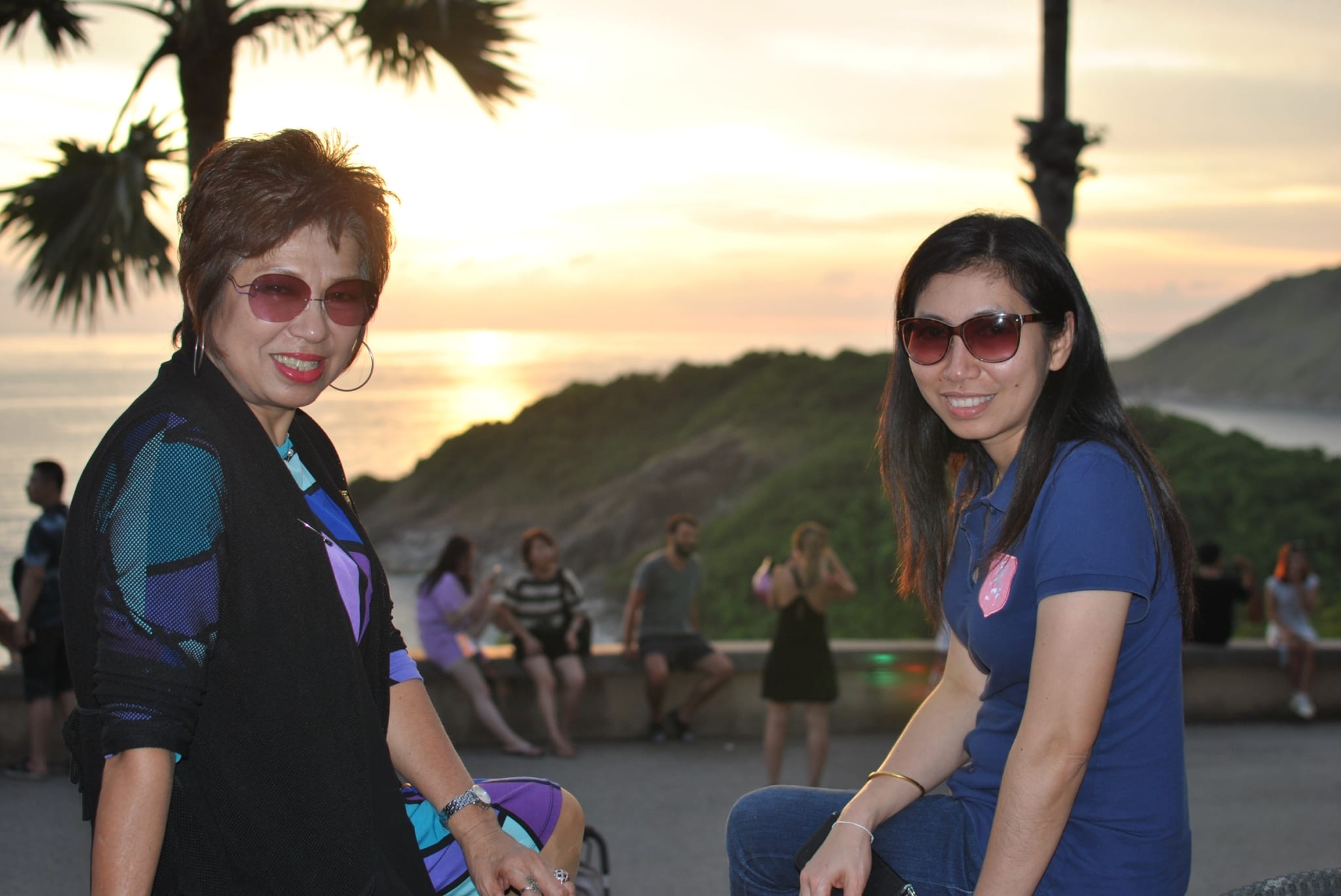 ถ่ายรูปเสร็จรีบขึ้นไปยัง แหลมพรหมเทพ ซึ่งไปถึงจอดรอลานจอดรถว่างแป็บนึ่ง พระอาทิตย์ยังไม่ตกแต่มีนักท่องเที่ยวส่วนหนึ่งเดินทางกลับแล้ว คงเพราะคิดว่าพระอาทิตย์วันนี้ยังลับเมฆตกไม่สวย แต่วันนี้เมฆเป็นใจไม่บังพระอาทิตย์ยามจมน้ำ ซึ่งนักท่องเที่ยวต่างนั่งมองอมยิ้ม บ้างถ่ายรูปเป็นที่ระลึกว่าครั้งหนึ่งเคยมาที่แหลมพรรมเทพอันโด่งดัง โดยเฉพาะนักท่องเที่ยวจีนดูมีความสุขมากมาย