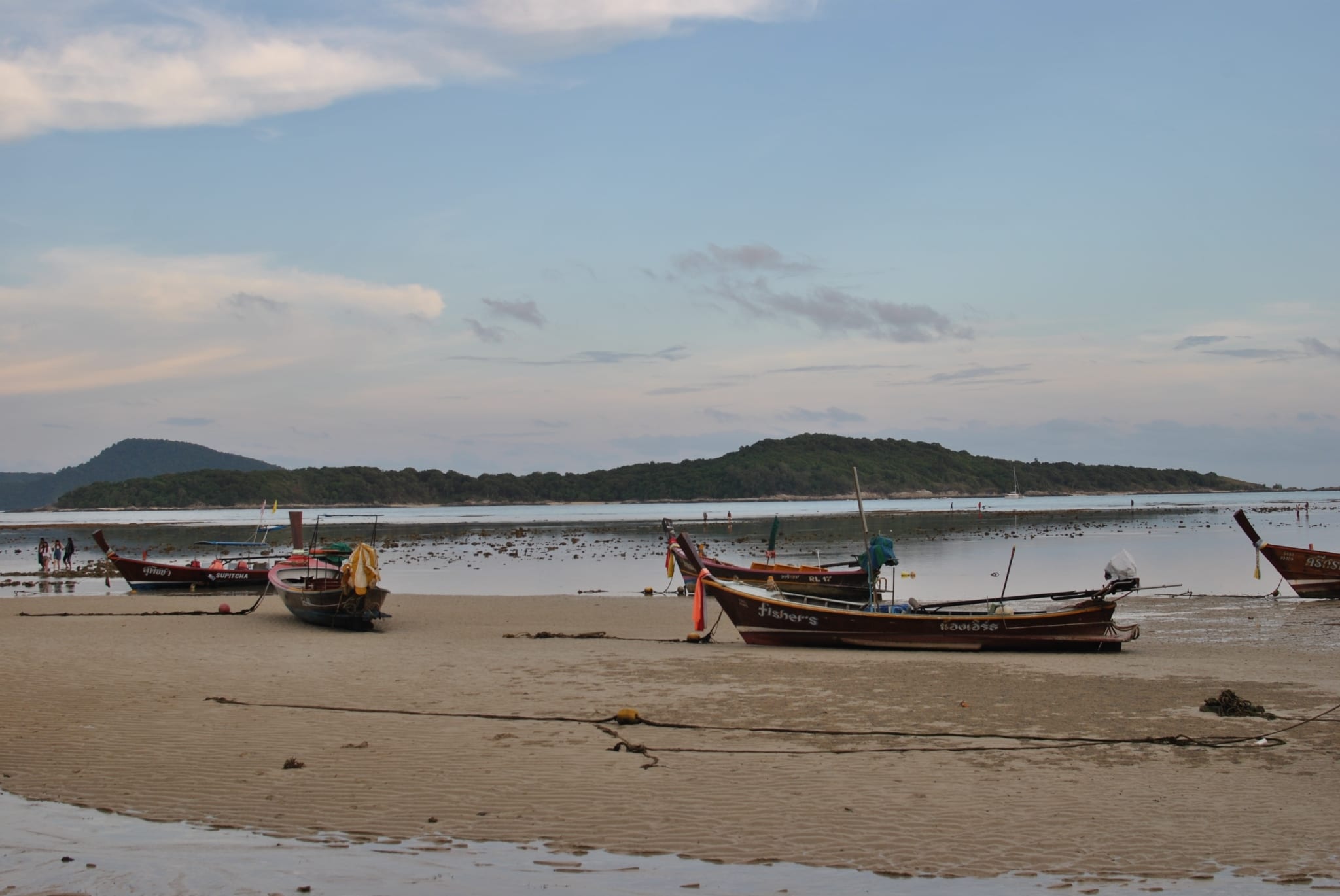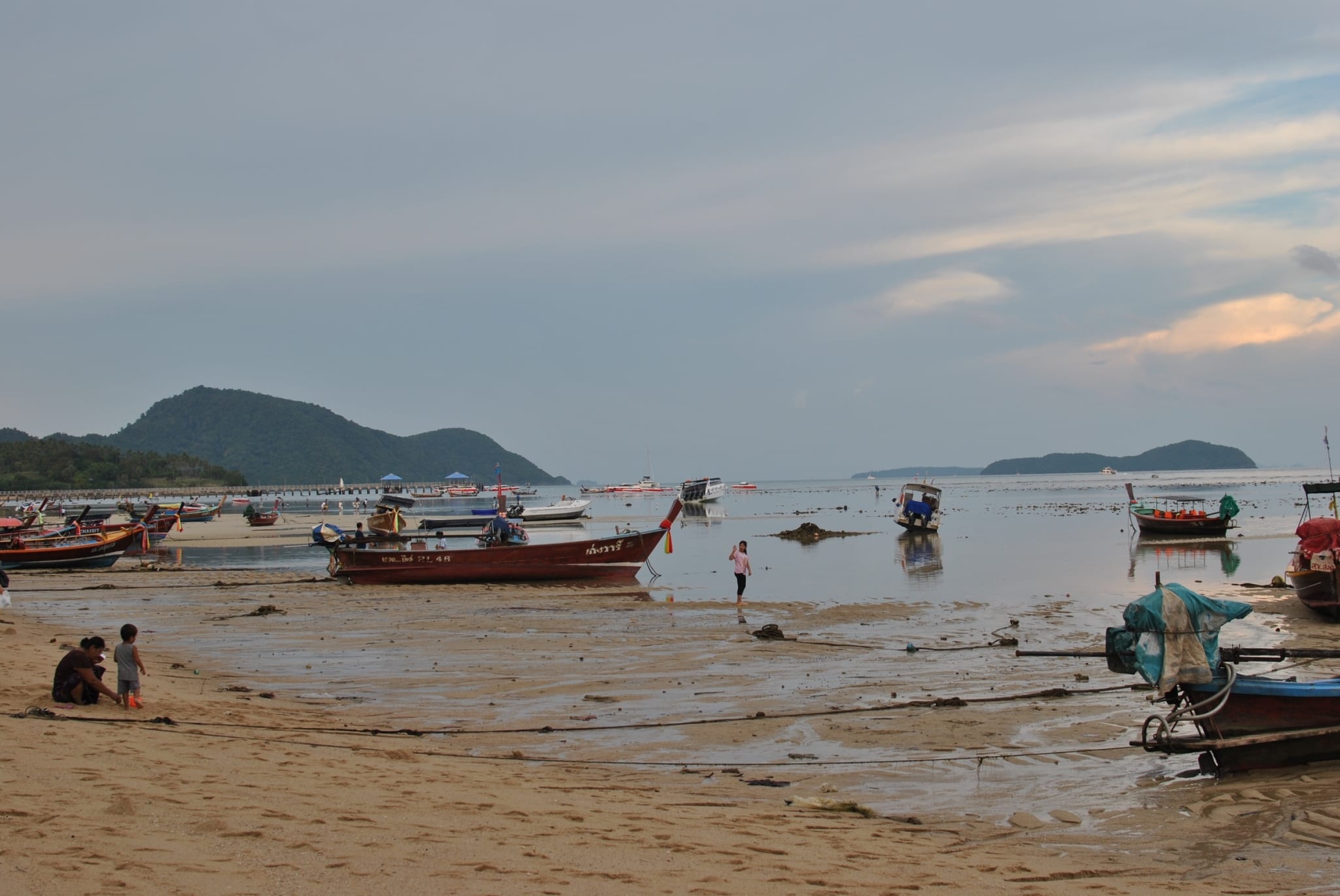ผ่านแยกรถติดไปได้ ก็จะเลี้ยวขวาเข้าถนนหน้าหาดราไวย์ ซึ่งด้านซ้ายเมืองเป็นหาด ด้านขวาเป็นร้านอาหารซีฟู๊ดตลอดแนวถนน พระอาทิตย์ยังไม่ตก จึงพอมีเวลาเวลาถ่ายรูปหาดราไวย์ช่วงน้ำทะเลลง เห็นเรือประมงพื้นบ้านนอนติดท้องทรายจำนวน อย่ารถช้ารีบเก็บรูปกันก่อนจะไปต่อ เพราะหากแวะขากลับ มืดแล้วก็คงมองไม่เห็นอะไร