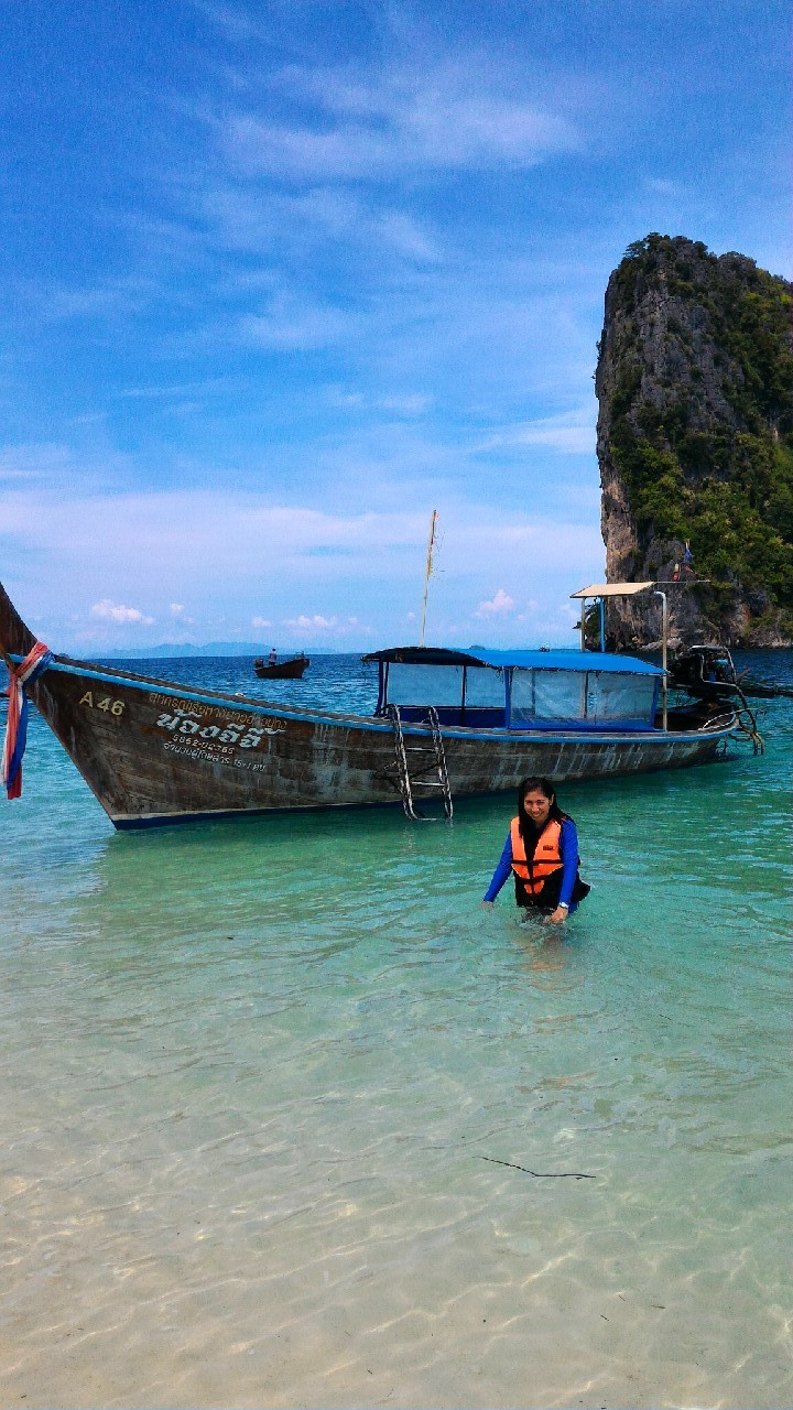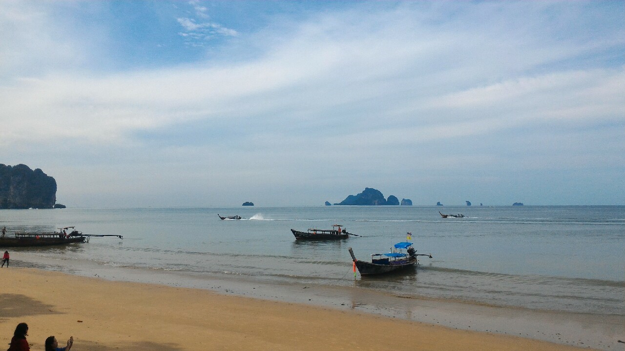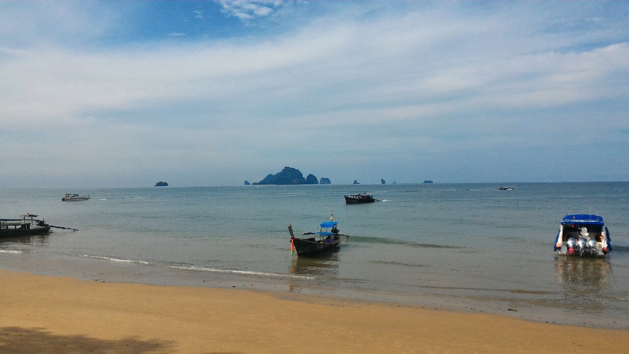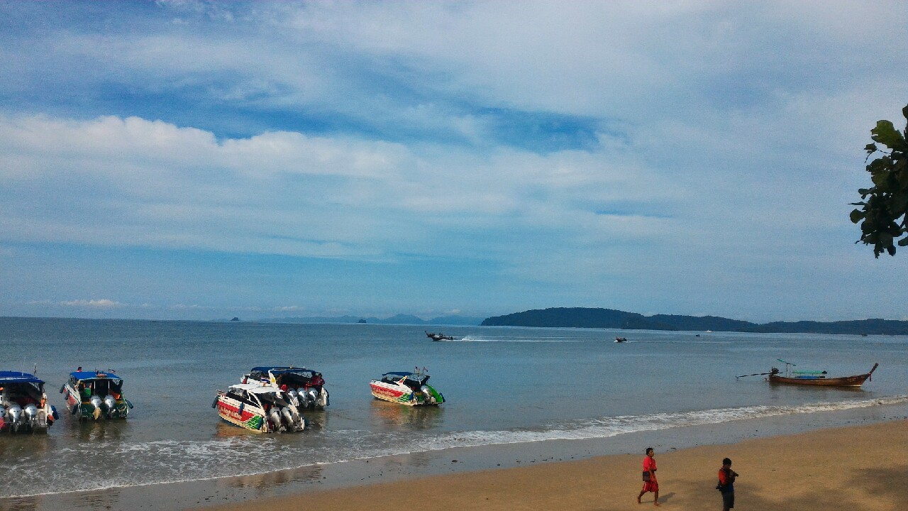 นั่งรอเวลารถสองแถวมารับ 08.00 น. และพาวิ่งรับคนนี้คนนั้นตามโรงแรมต่าง ๆจนถึงชายหาดอ่าวนาง นำบิลจ่ายเงินมาให้น้องที่จัดทริปดูพร้อมติดสติกเกอร์ที่เสื้อว่าควรลงเรือลำไหน เพราะบางลำไป 4 เกาะ บางลำไปเกาะพีพี และ เกาะห้อง สำหรับทริปนี้ทัวร์ 4 เกาะทะเลแวก ก่อนออกเรือเราไปดูข้อมูลทั่วไปของอ่าวนางกันก่อน