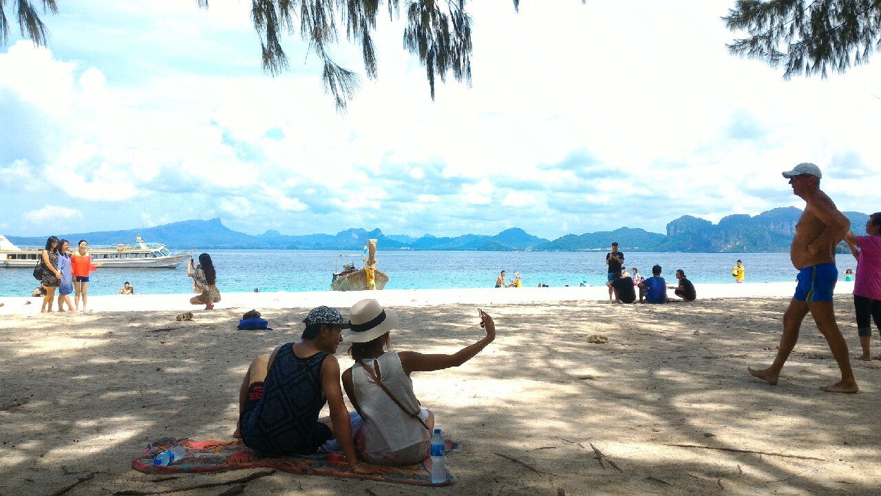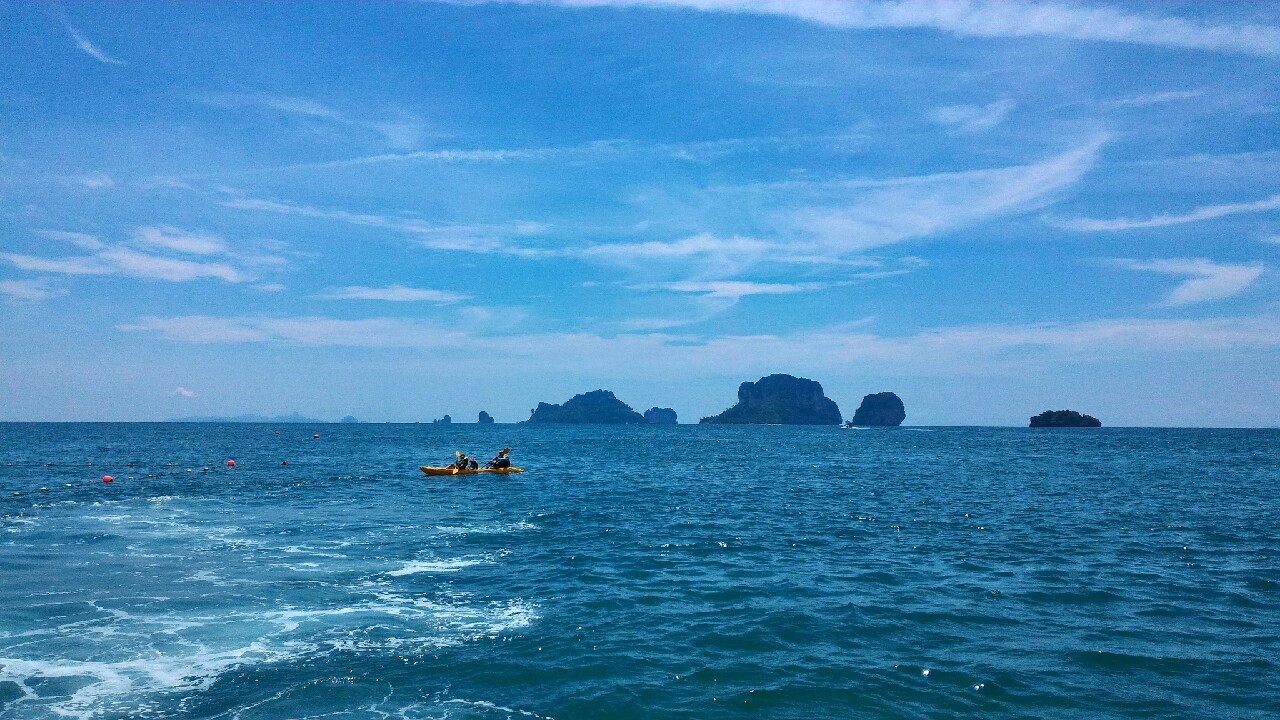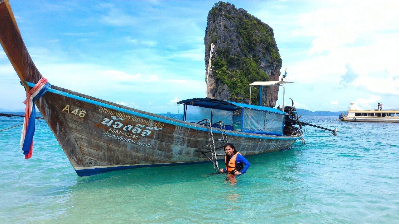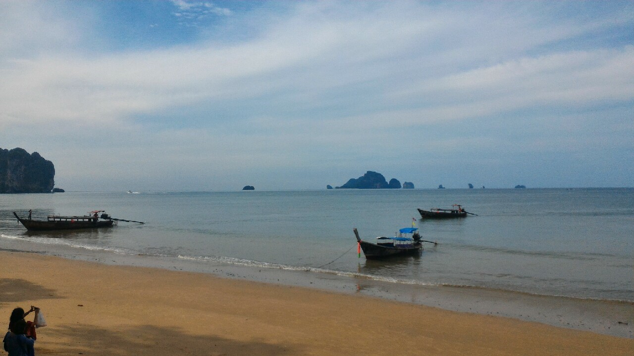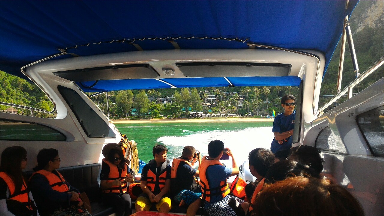 นั่งรอเวลารถสองแถวมารับ 08.00 น. และพาวิ่งรับคนนี้คนนั้นตามโรงแรมต่าง ๆจนถึงชายหาดอ่าวนาง นำบิลจ่ายเงินมาให้น้องที่จัดทริปดูพร้อมติดสติกเกอร์ที่เสื้อว่าควรลงเรือลำไหน เพราะบางลำไป 4 เกาะ บางลำไปเกาะพีพี และ เกาะห้อง สำหรับทริปนี้ทัวร์ 4 เกาะทะเลแวก ก่อนออกเรือเราไปดูข้อมูลทั่วไปของอ่าวนางกันก่อน