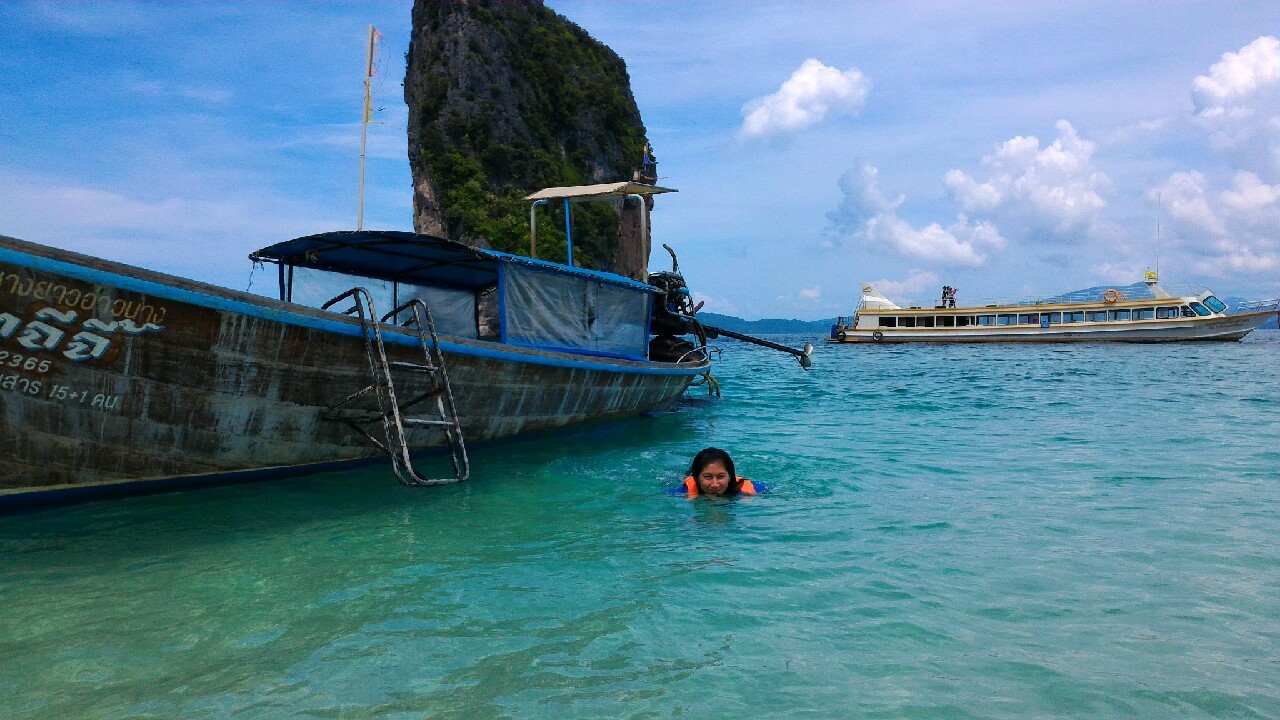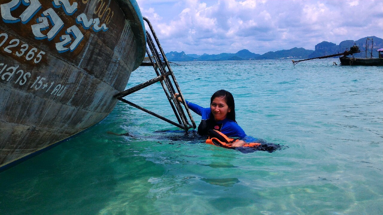 บนเรือมีทั้งชาวไทย, จีน, ยุโรป ไกด์มีความเป็นกันเอง แนะนำการใช้หน้ากาดำน้ำสน็อคเกอร์หรือใช้ท่อหายใจดำผิวน้ำ