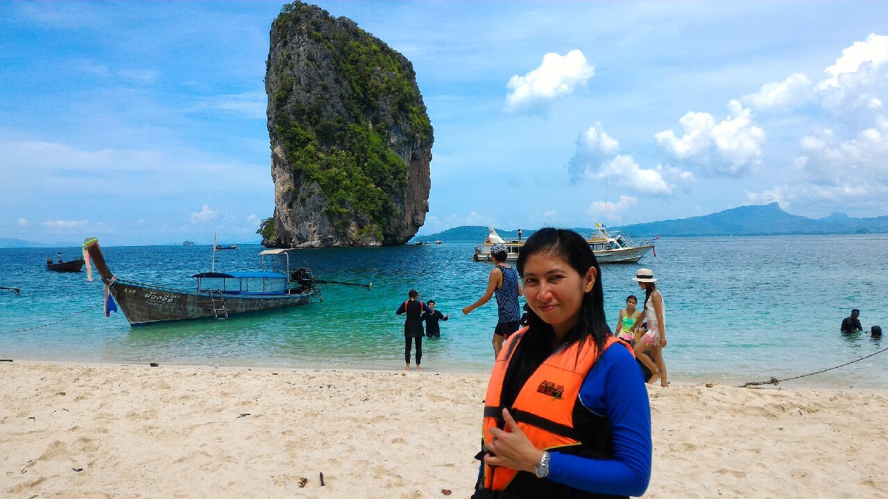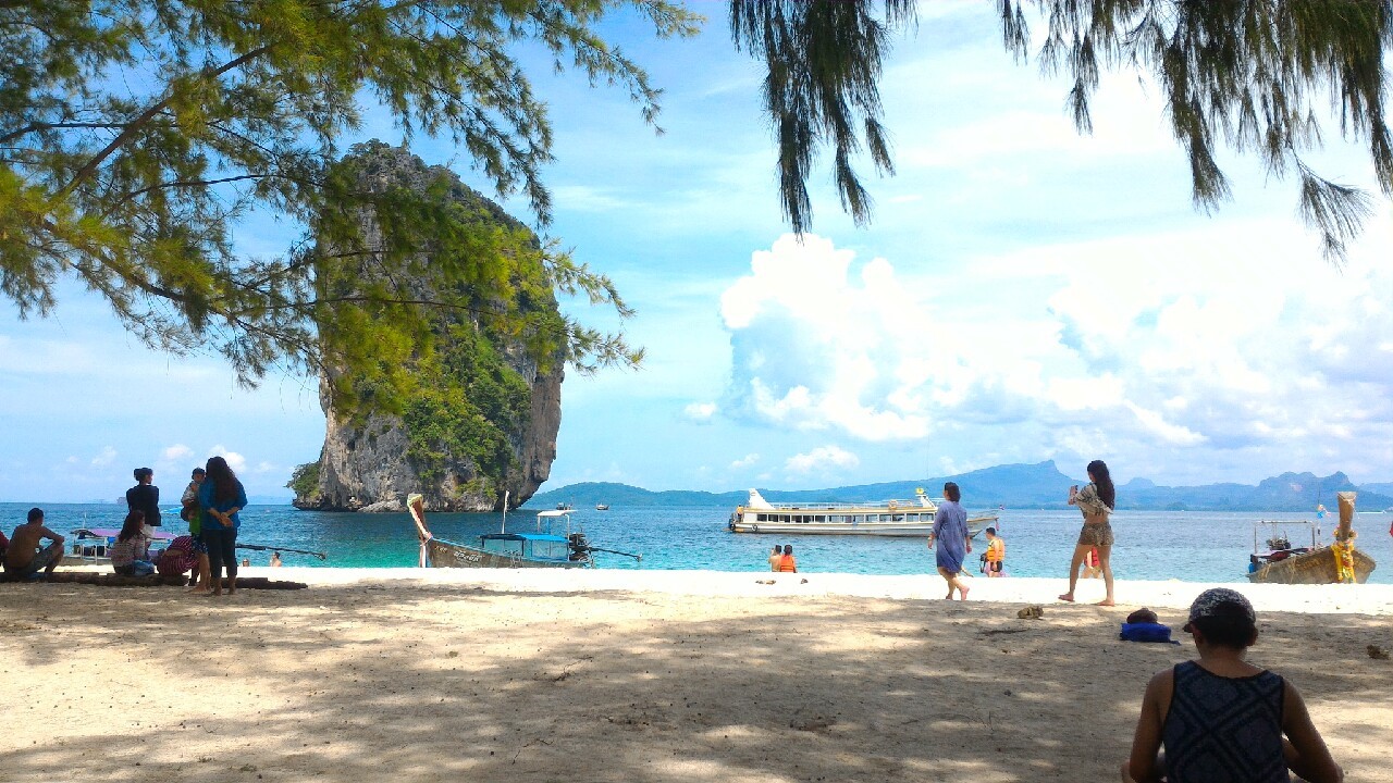 หลังแวะกินข้าวที่หาดเกาะปอดะ เป็นเหมือน ใบเรือ ก็นำเรือไปเทียบที่อ่าวพระนาง เพื่อให้เราไปชมถ้ำพระนาง