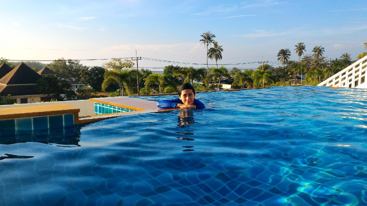 จากนั้นนำเรือเข้งแถวคันเดิมกลับมาส่งที่โรงแรม ถึงโรงแรมปุ๊บยังมีเวลาเล่นน้ำในสระต่อ ชมพระอาทิตย์ตกดิน